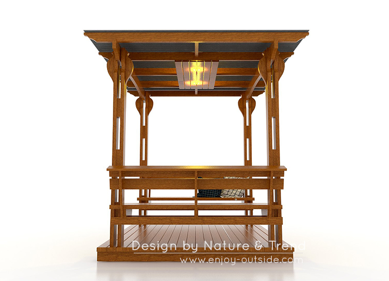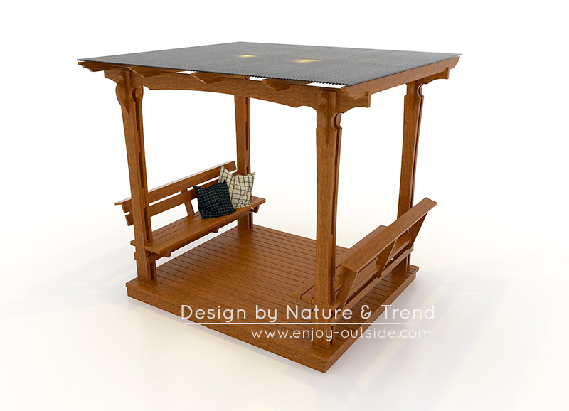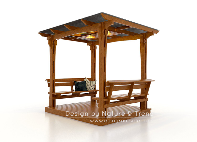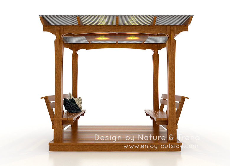 "Pergola A" ตัวฟูลออฟชั่นมาพร้อมกับพนักพิงและชุดโคมไฟ LED 2จุด ในตัวศาลา (สามารถตัดออกได้)